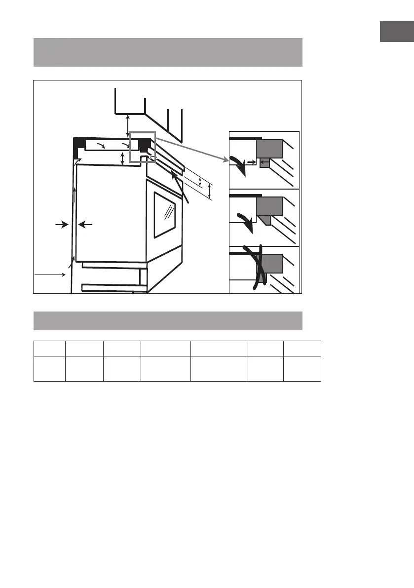 Hinweis: Der Sicherheitsabstand zwischen dem Kochfeld und dem Schrank