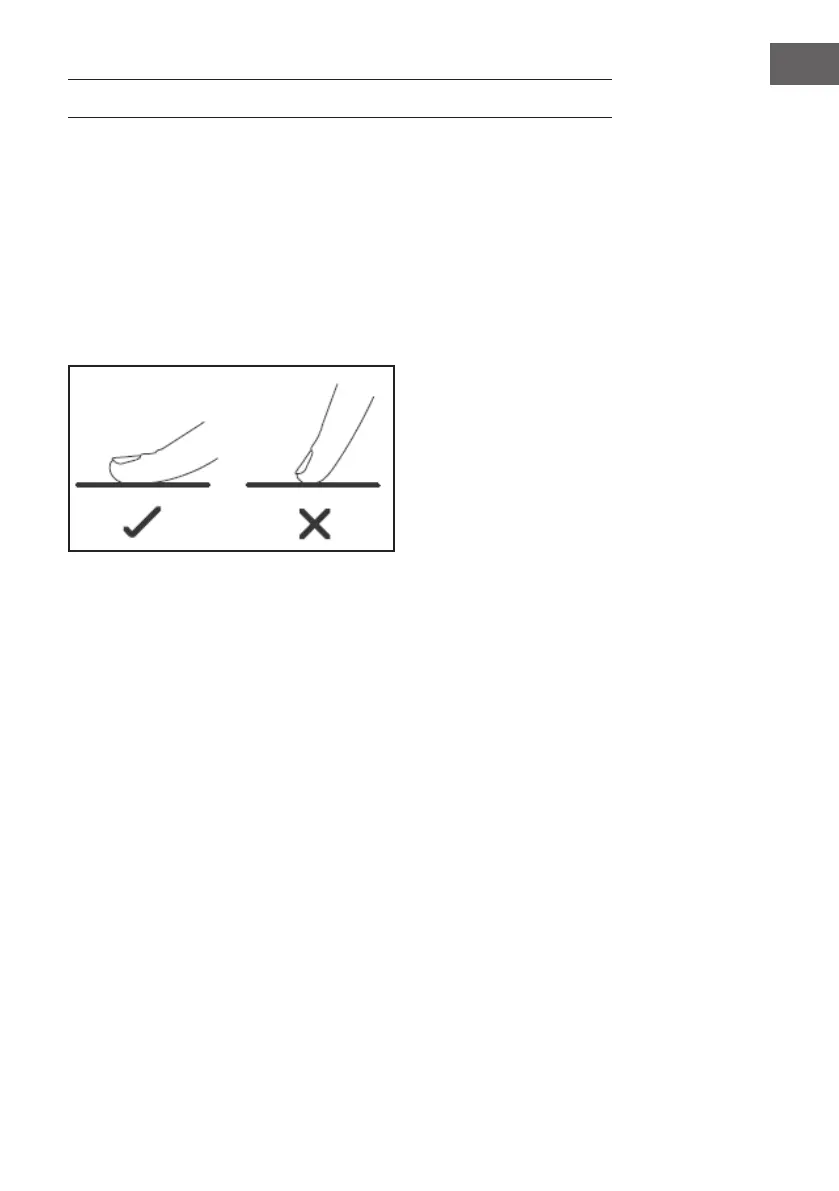 • Benutzen Sie den Ballen Ihres Fingers, nicht die Spitze.