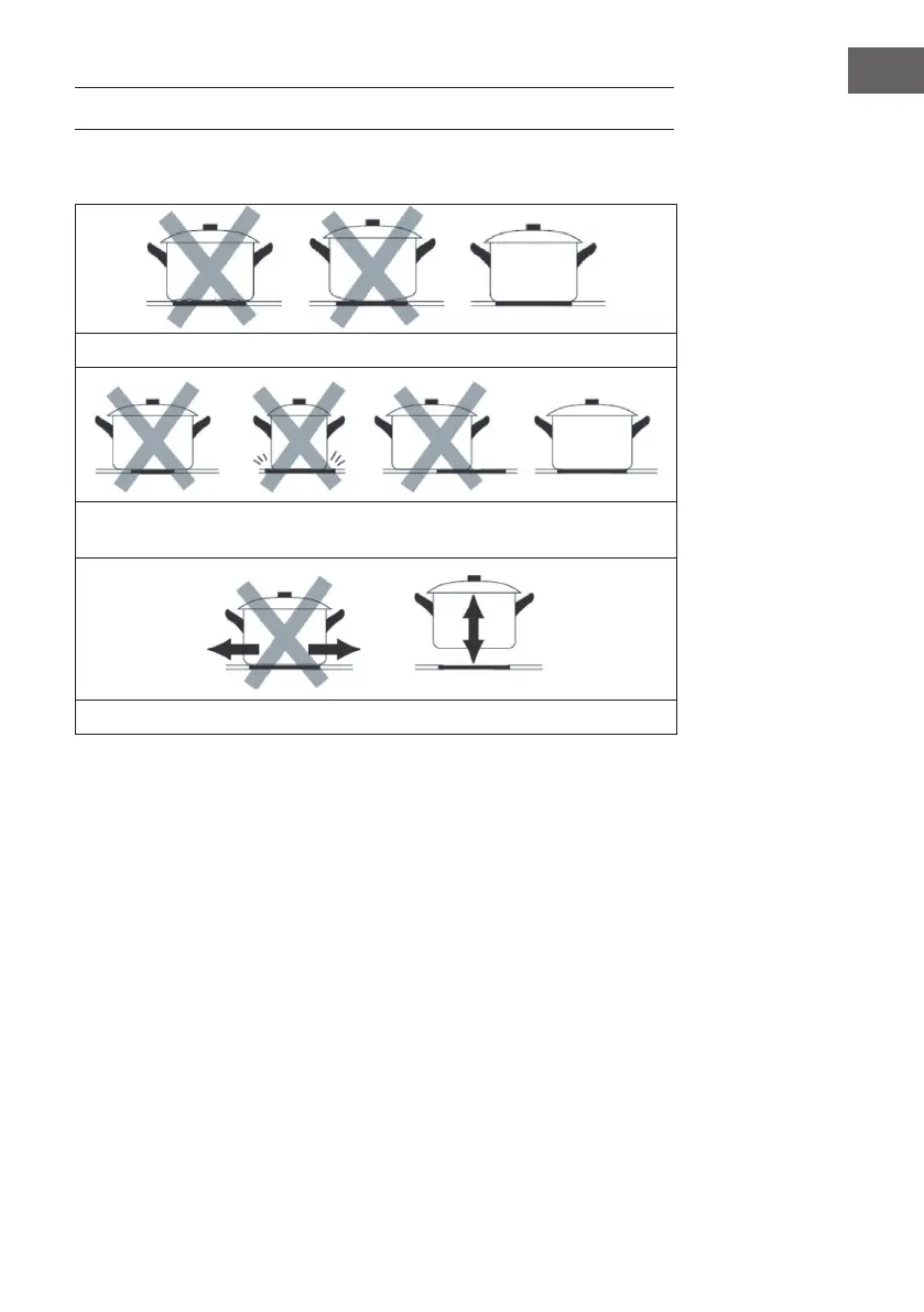 the same size as the cooking zone. Always centre your pan on the cooking zone.