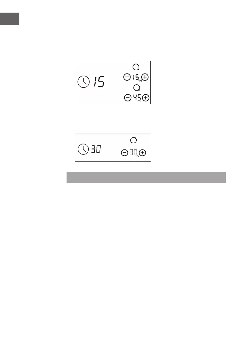 dots of the relevant cooking zones are on. The minute display shows the min.