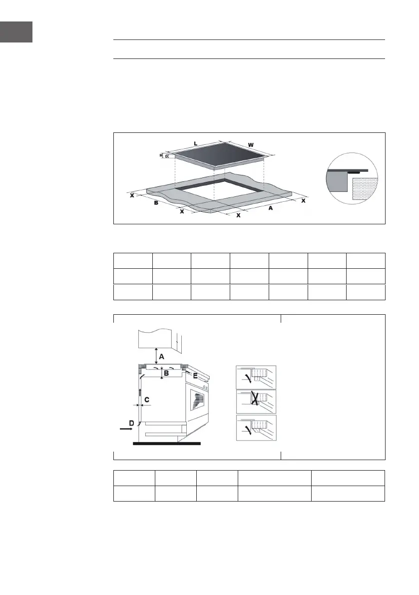 Schneiden Sie die Arbeitsplatte entsprechend der Maße in der Tabelle und dem