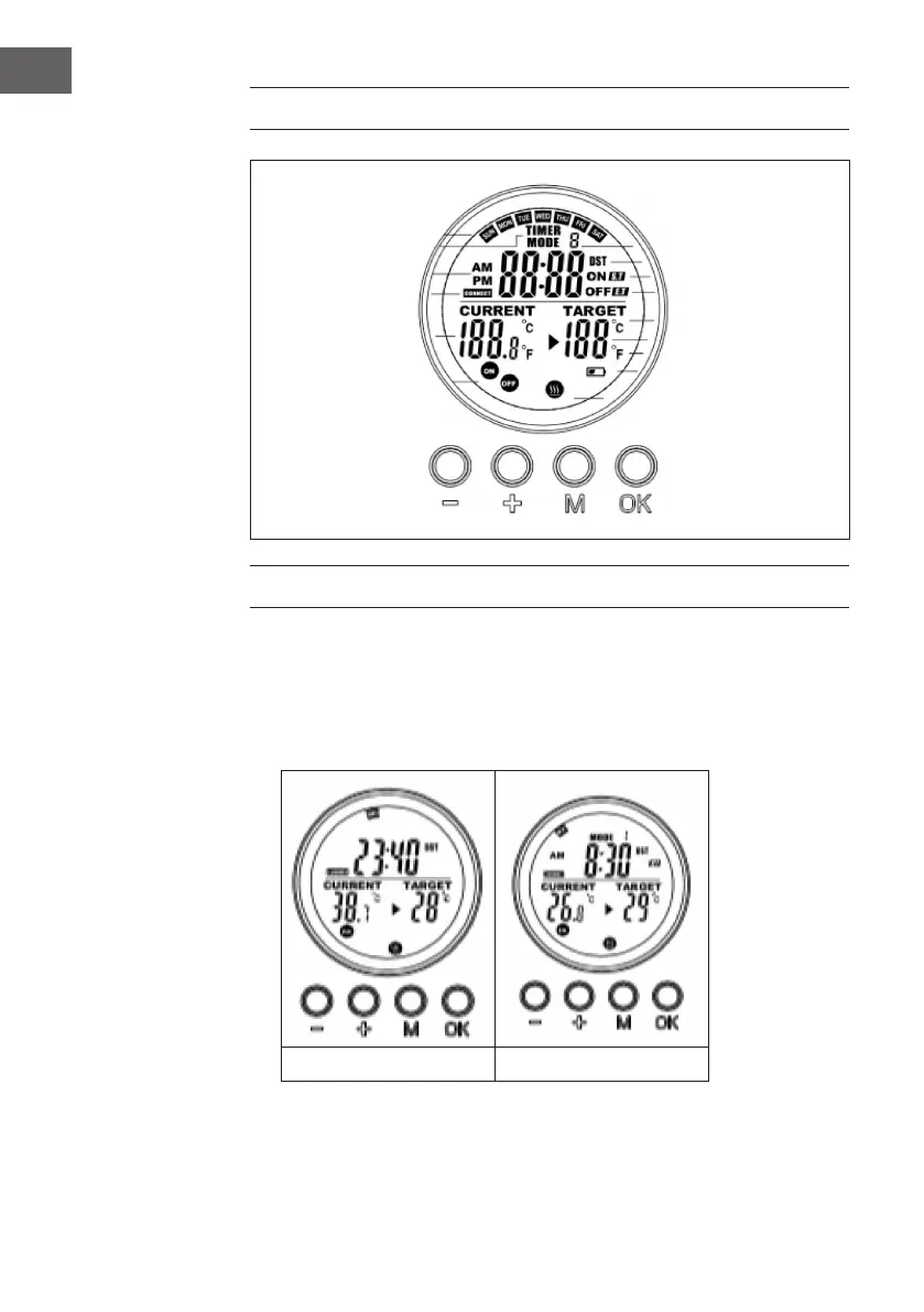• Drücken Sie die Taste [M], um zwischen Systemzeit und Thermostat zu wechseln.