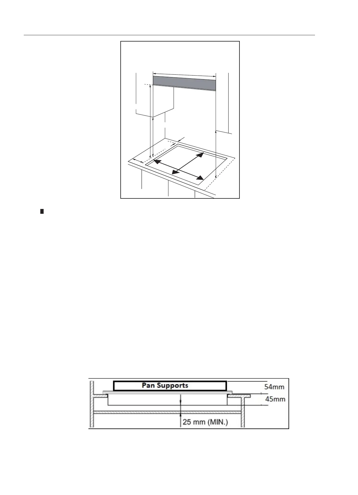 surface is in line with the outer edge of the hob. If the underside of the horizontal
