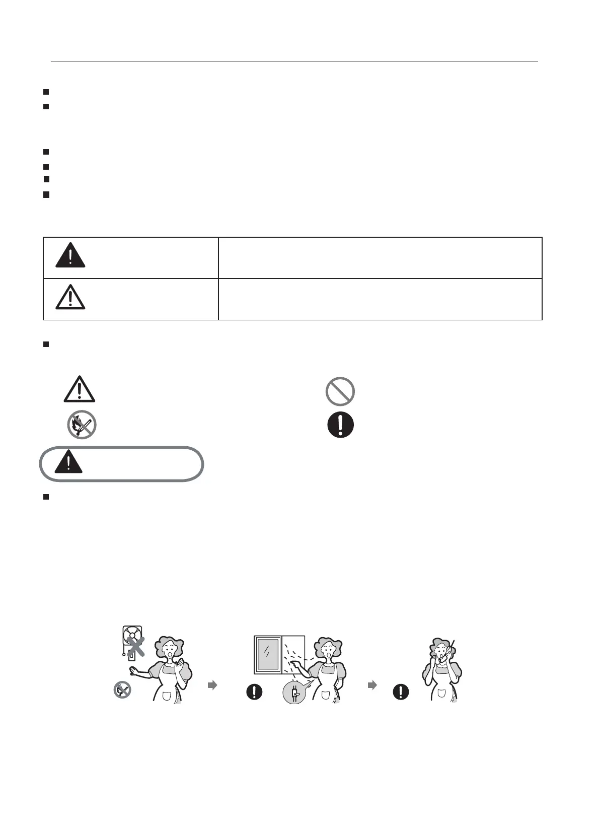 - Do not switch on/off any electrical appliance and do not touch any electric plug.