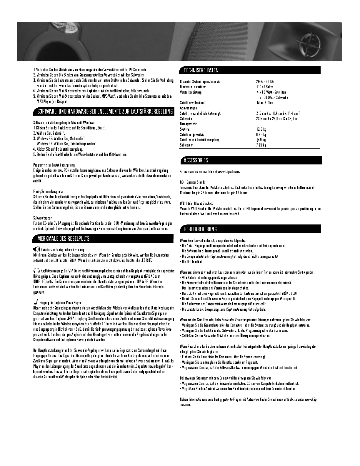 Bekijk gratis de handleiding van Klipsch ProMedia 4.1, stel vragen en lees de antwoorden op veelvoorkomende problemen, of gebruik onze assistent om sneller informatie in de handleiding te vinden of uitleg te krijgen over specifieke functies.