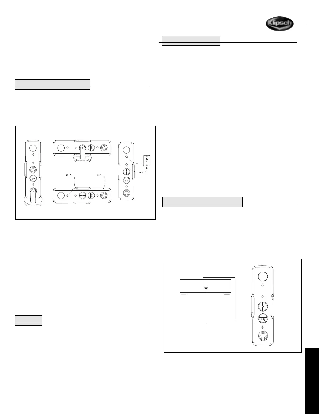 SPEAKERS. PLEASE CONSULT YOUR AUTHORIZED KLIPSCH DEALER FOR SUGGESTIONS AND