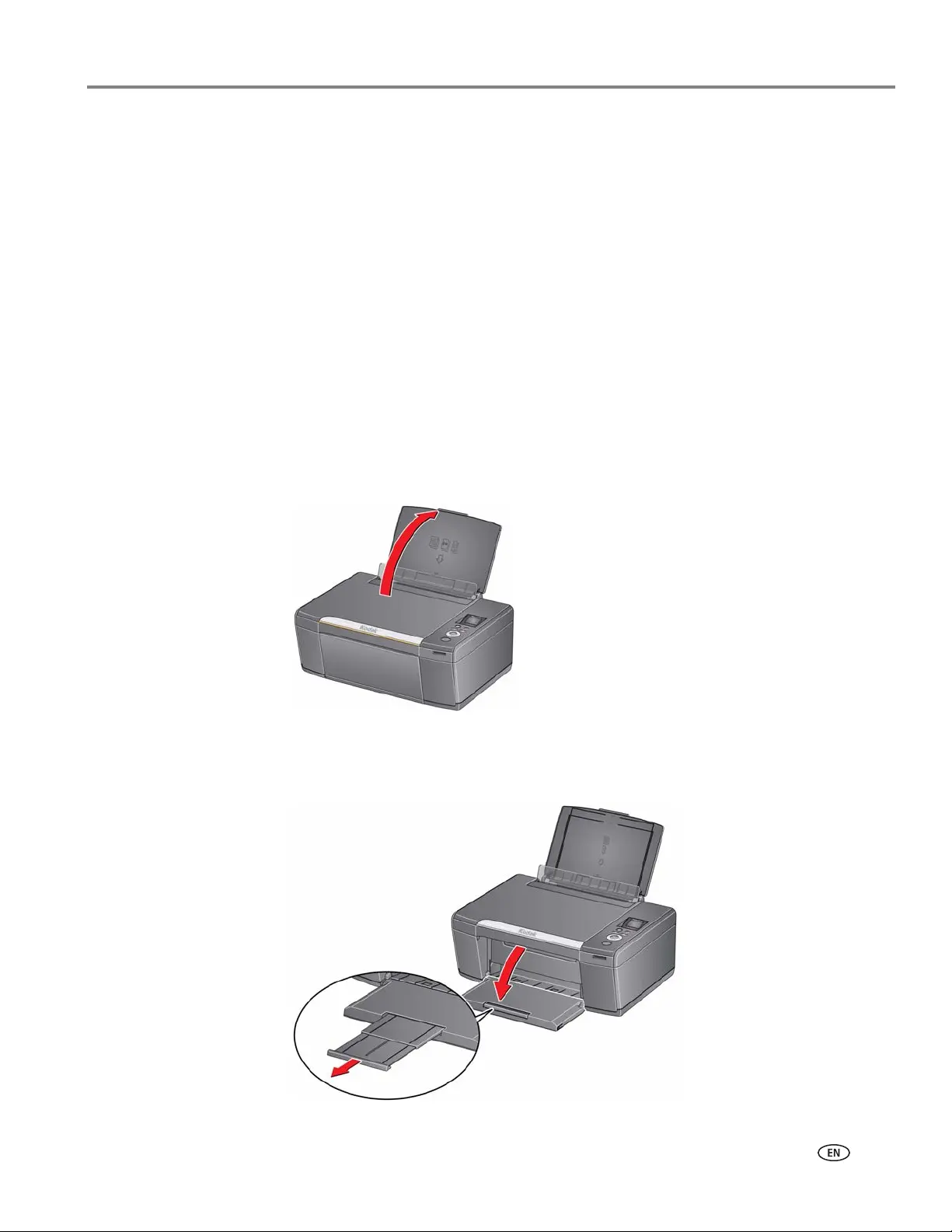 2. Open the output tray, then pull out the extender until it is fully extended.