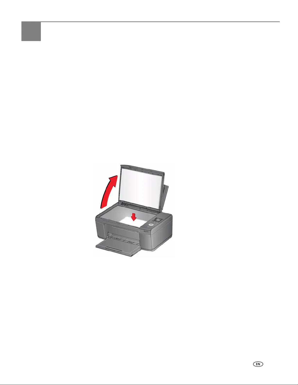 1. Lift the scanner lid, and place the document face down in the right-front corner