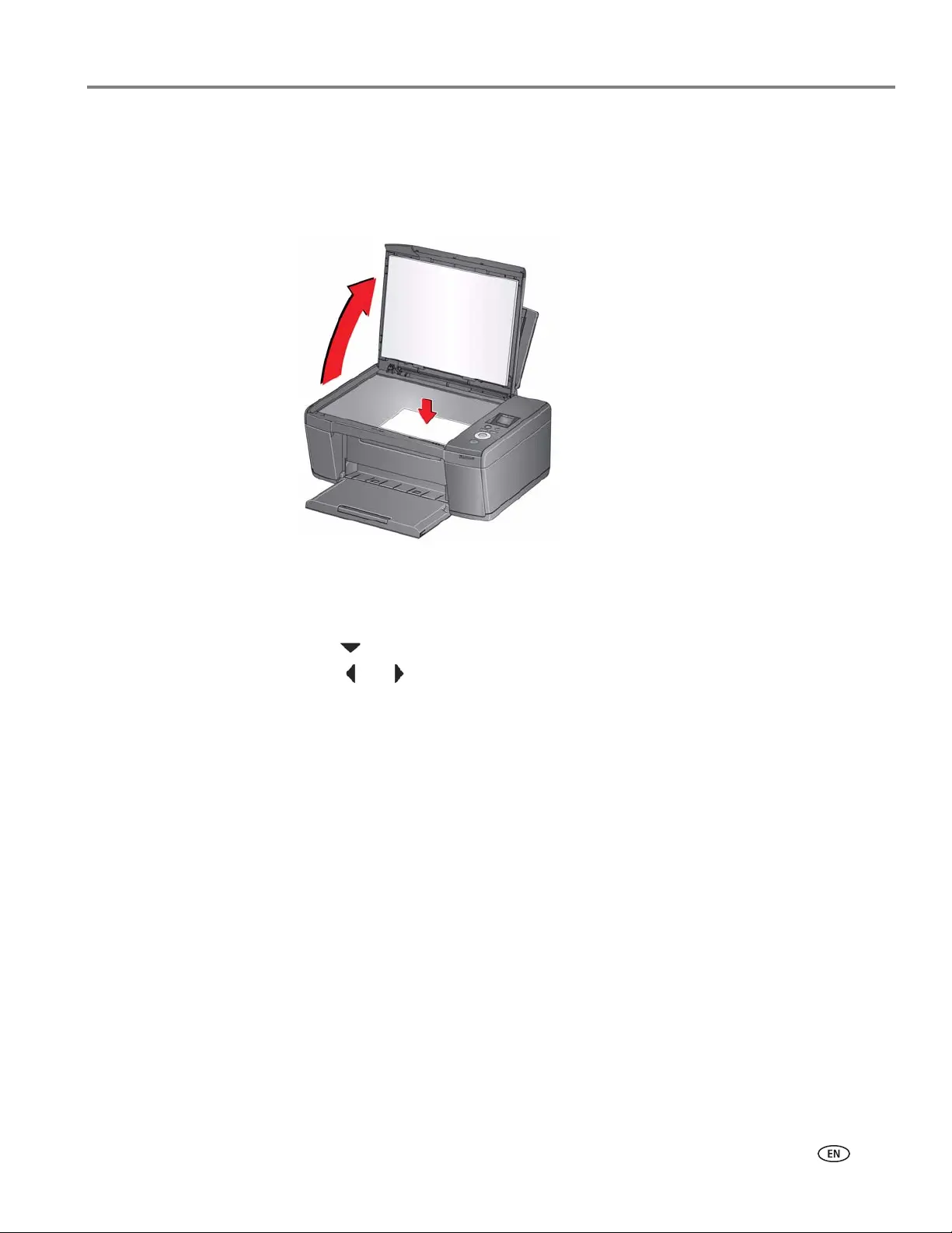 1. Lift the scanner lid, and place the document face down in the right-front corner
