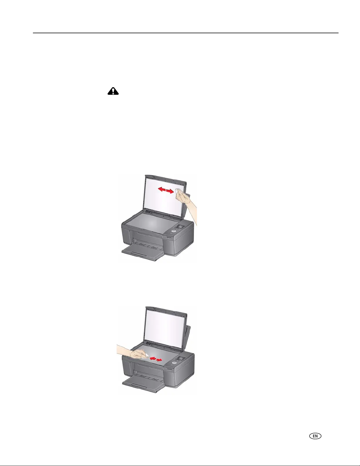 To clean the scanner glass and document backing under the scanner lid: