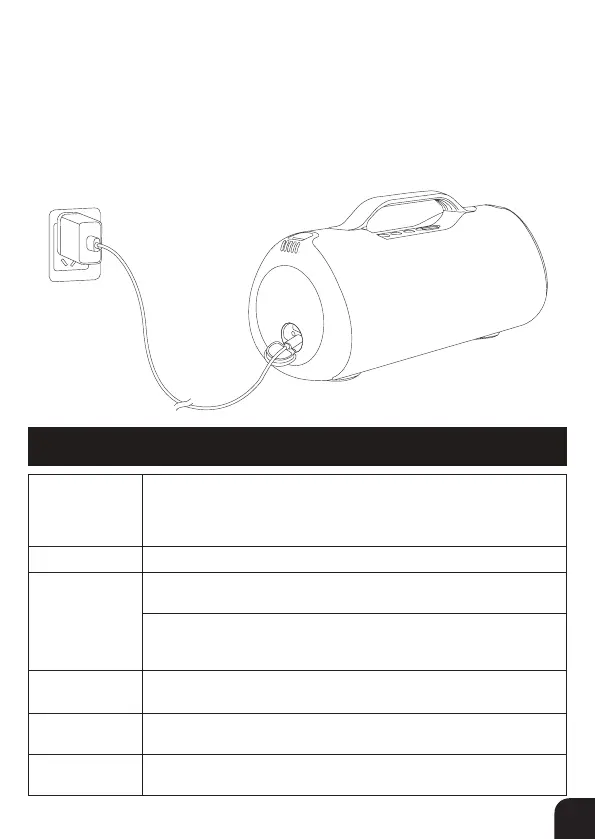 Stan ładowania Czerwona kontrolka będzie świecić podczas ładowania głośnika i
