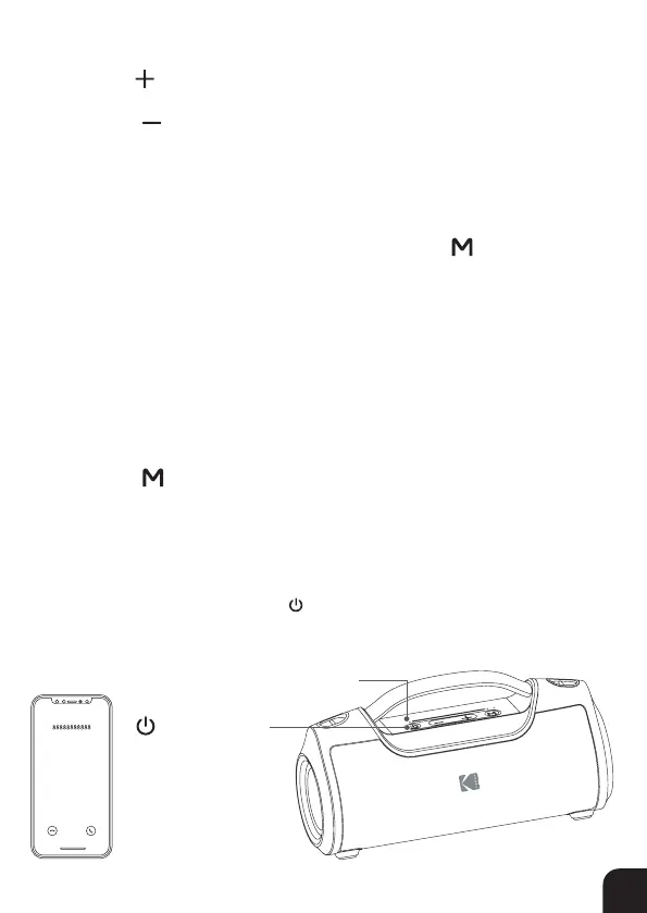 Short press “ ” to decrease volume; long press for 2 seconds to play