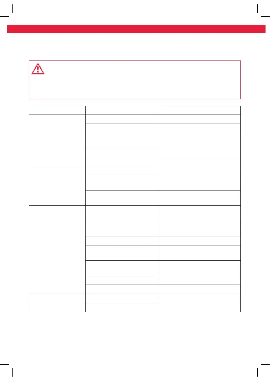If there are any problems during operation, please refer to the following table. If problems cannot
