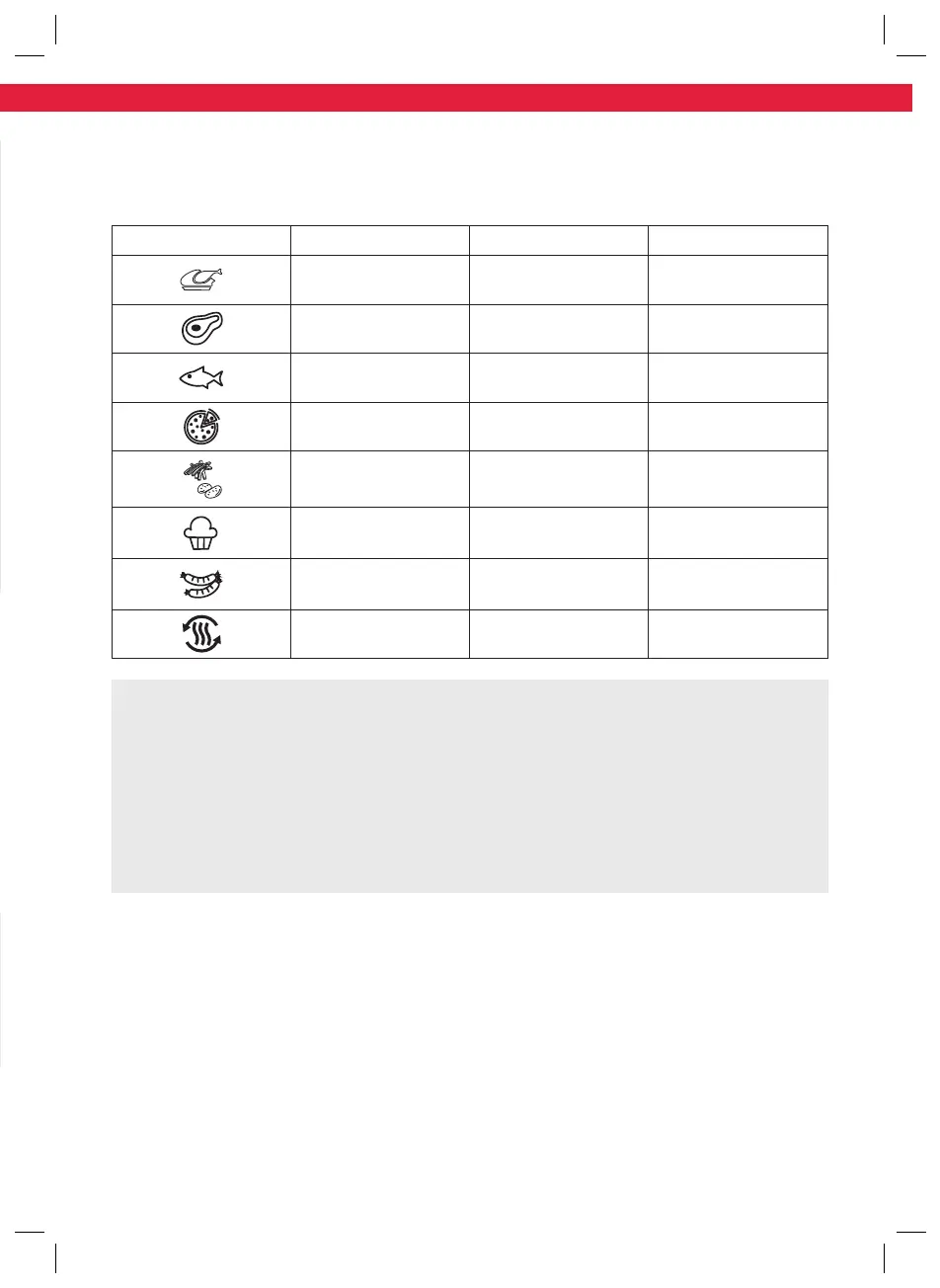 gotowania. Prosimy zwrócić uwagę na informacje podane w powyższej tabeli smażenia. Chcąc