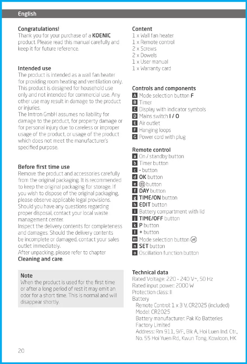 Bekijk gratis de handleiding van Koenic KFHW 2012324, stel vragen en lees de antwoorden op veelvoorkomende problemen, of gebruik onze assistent om sneller informatie in de handleiding te vinden of uitleg te krijgen over specifieke functies.