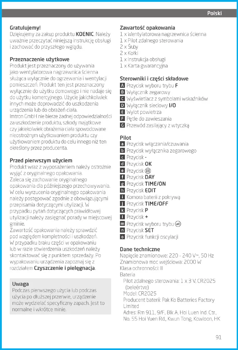 Koenic KFHW 2012324 handleiding