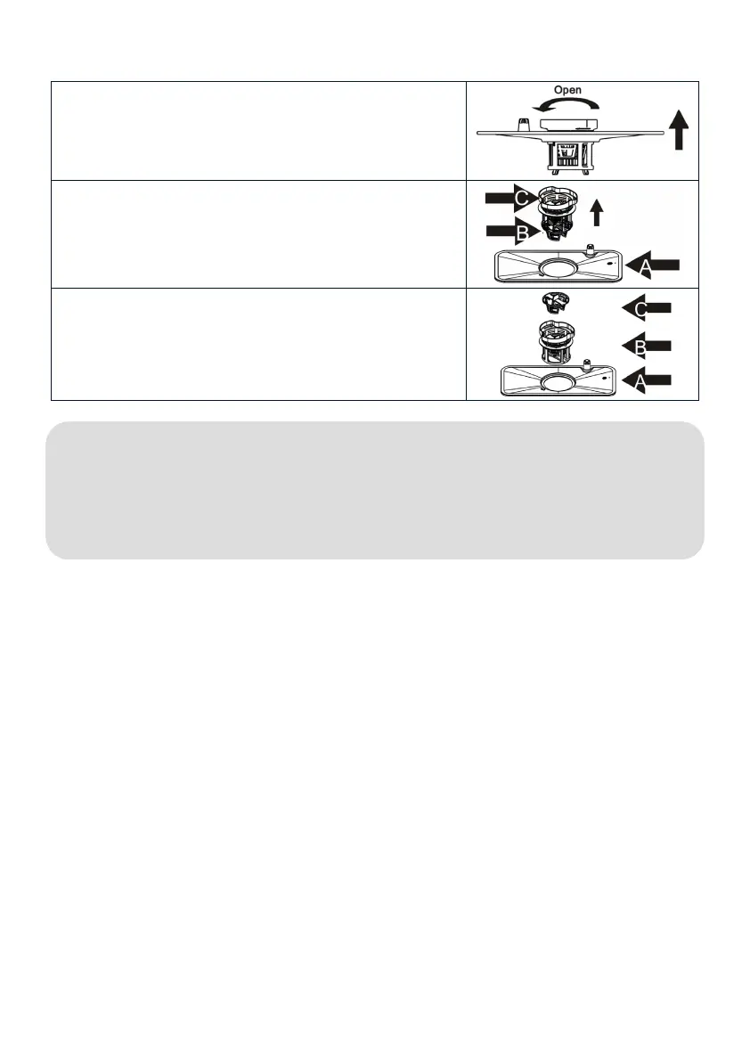 Rotate and lift the entire filter assembly (A, B, and C).