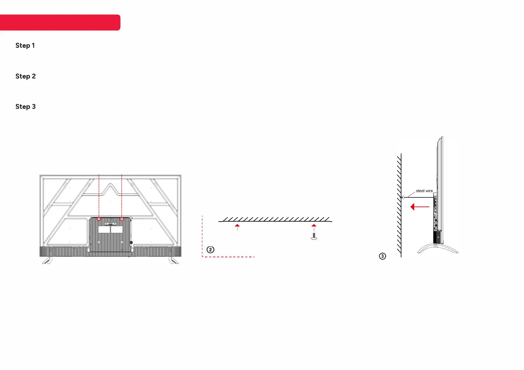 Secure the TV by wrapping the steel wire around the bolts in the wall and the rear of the TV.