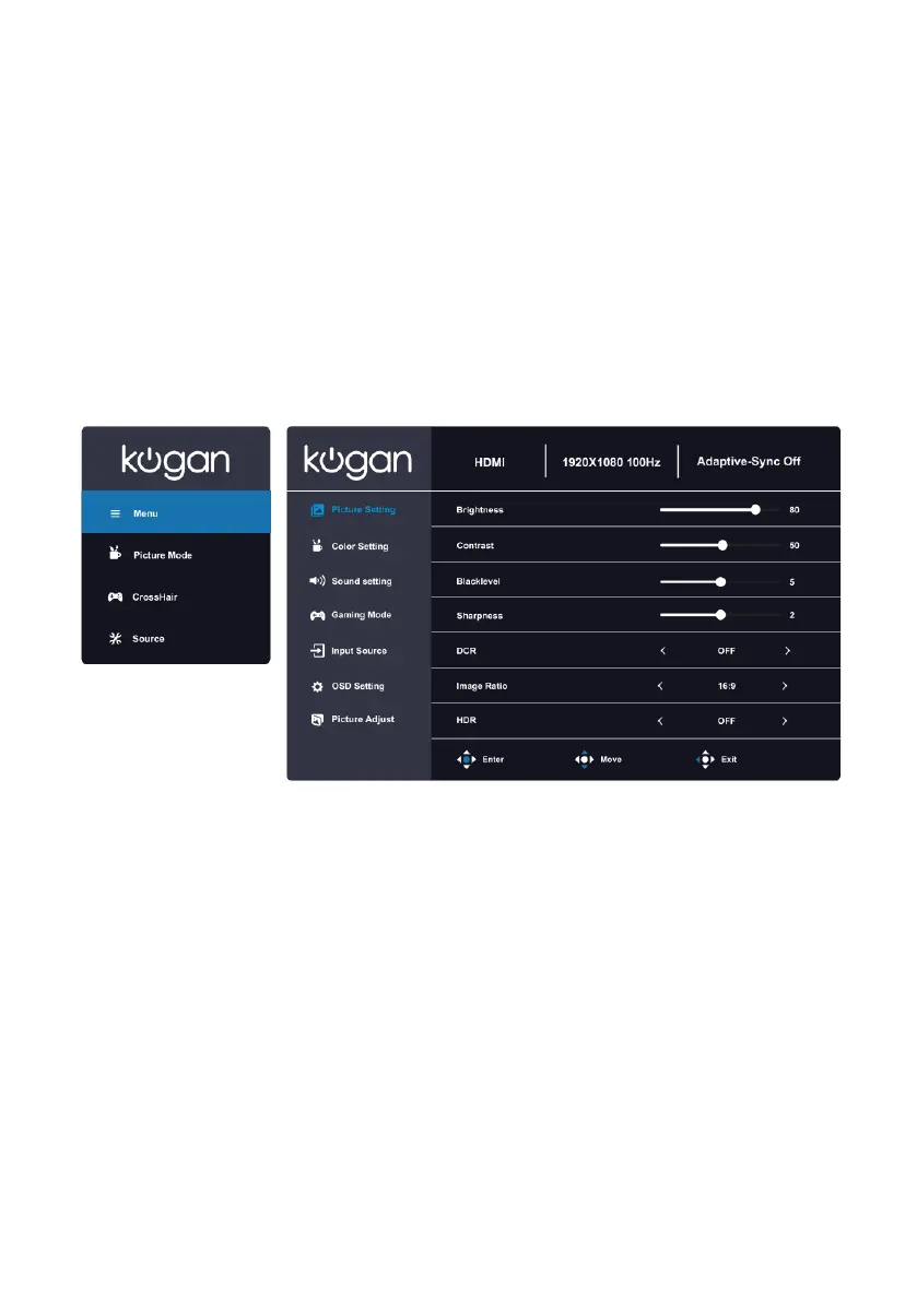 The OSD menu allows you to adjust various monitor settings.
