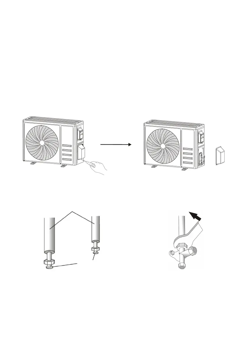 4. Align the centre, then rotate the flare nut of the connecting pipe and tighten it by