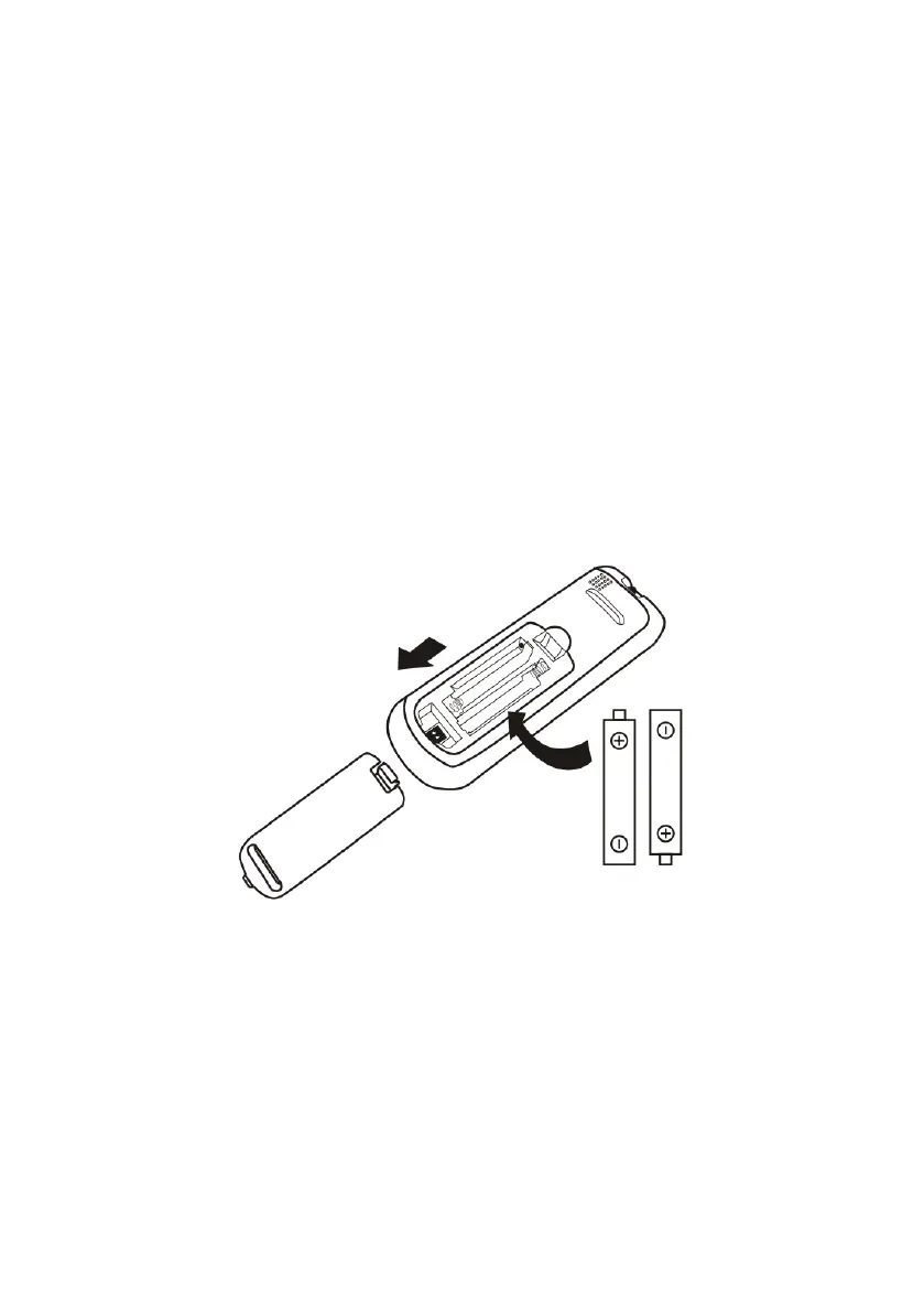 2. Install the batteries according to the ‘+’ and ‘-’ directions shown on the remote