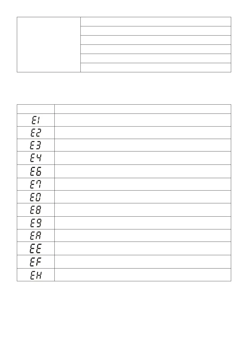 In case of an error, the following error codes will illuminate on the indoor unit display.