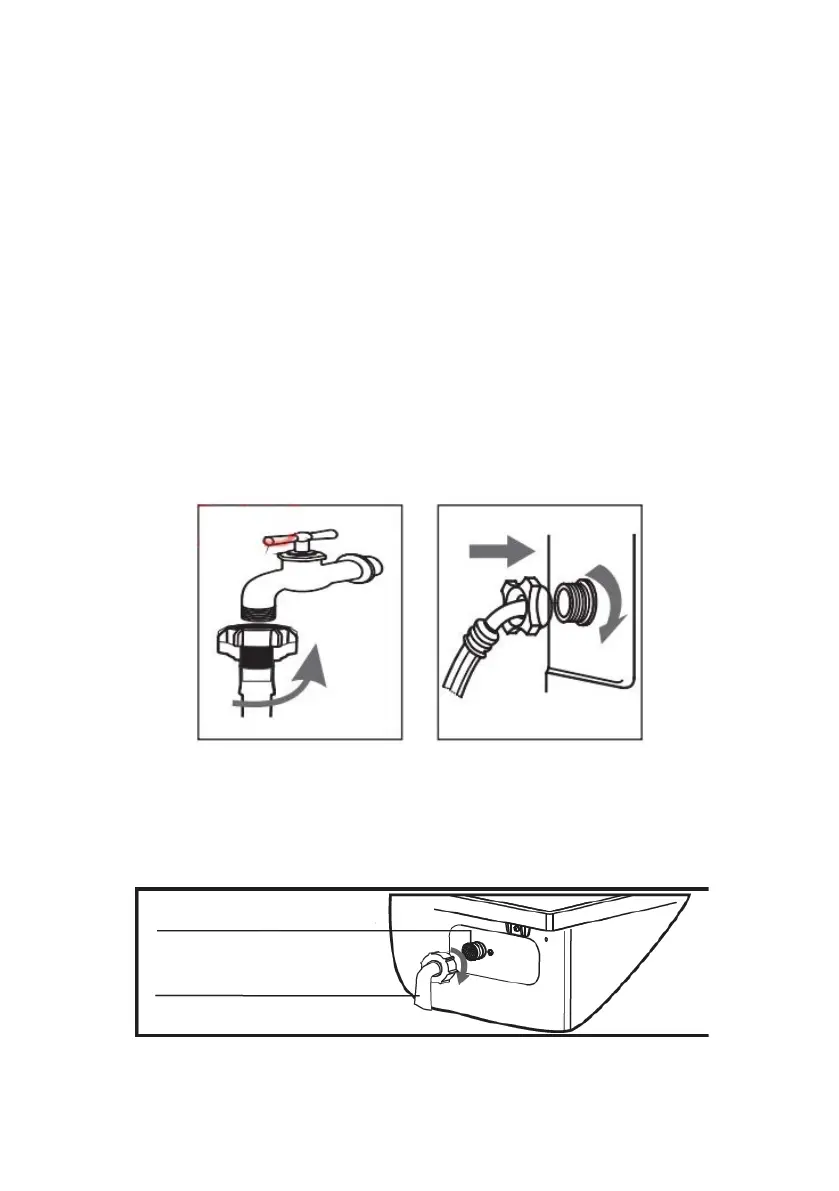 Connect the inlet hose to tap and fasten it anticlockwise.