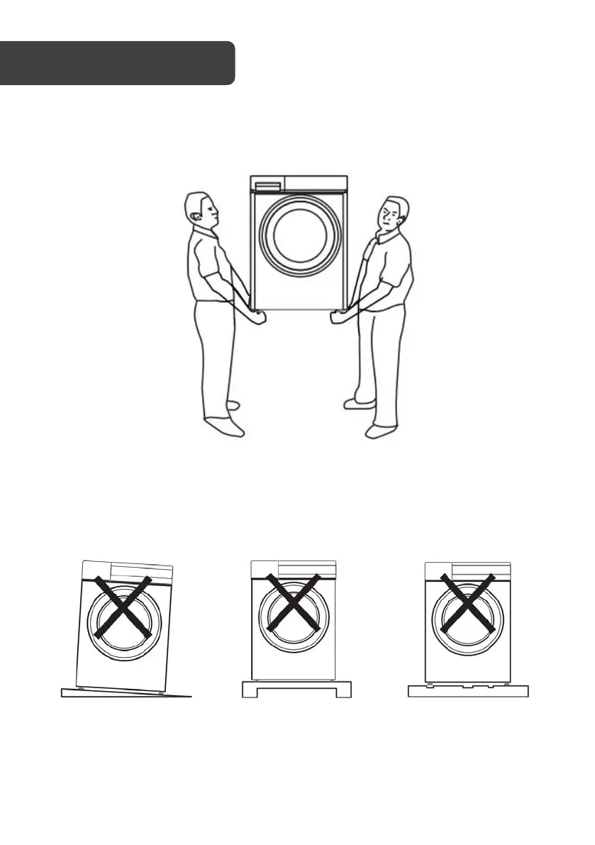 washing machine on the soft blanket or wooden floor. It is forbidden to lay the washing