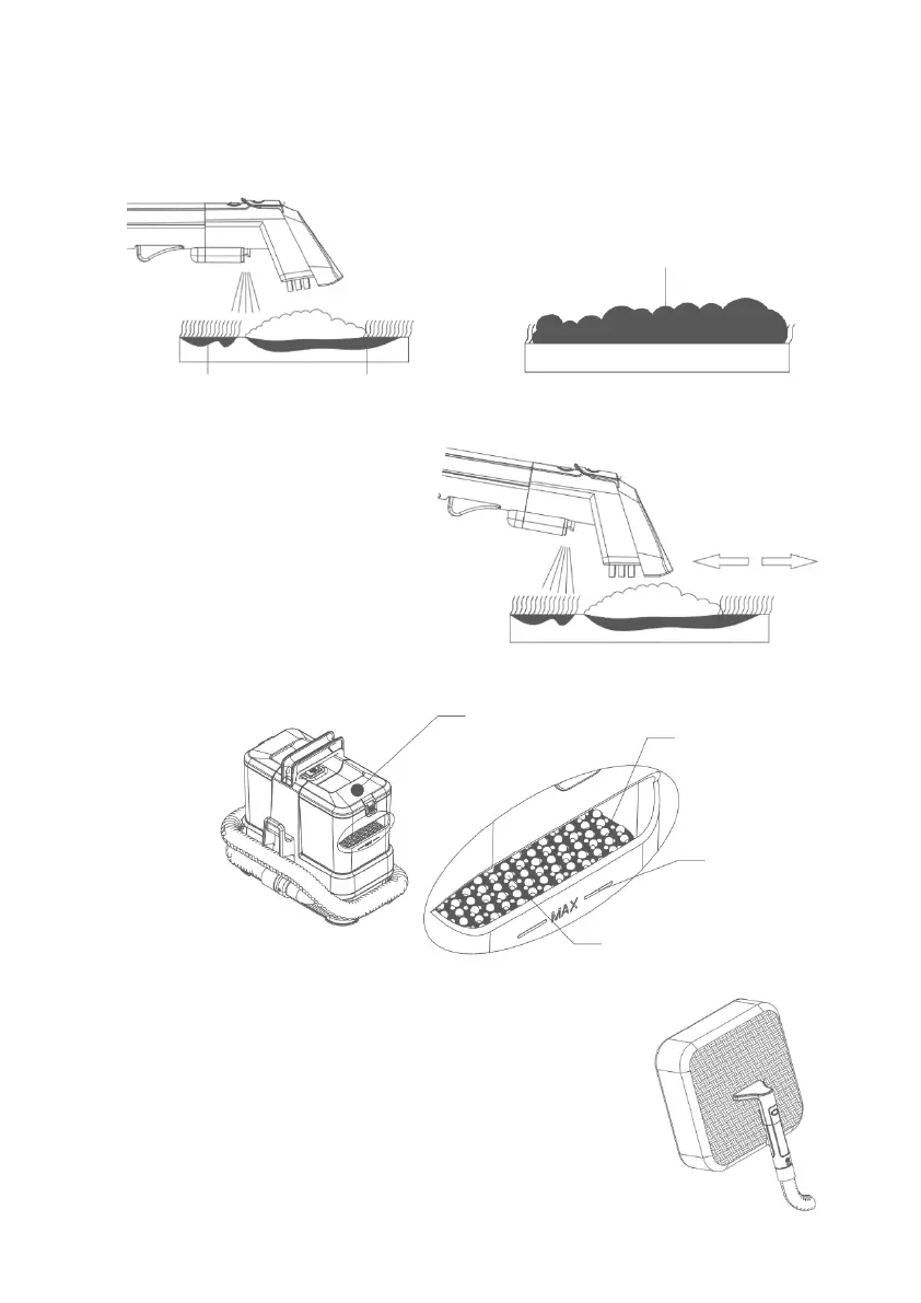 1. Apply the solvent to the carpet and use the brush attachment to lift the dirt. Refer to