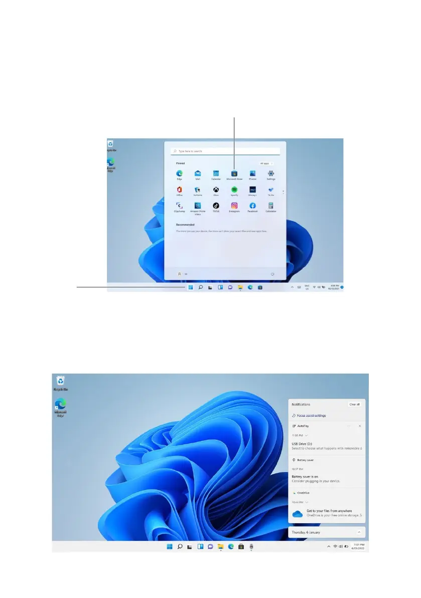 Apps already installed on the computer can be accessed via the start menu. Recently used