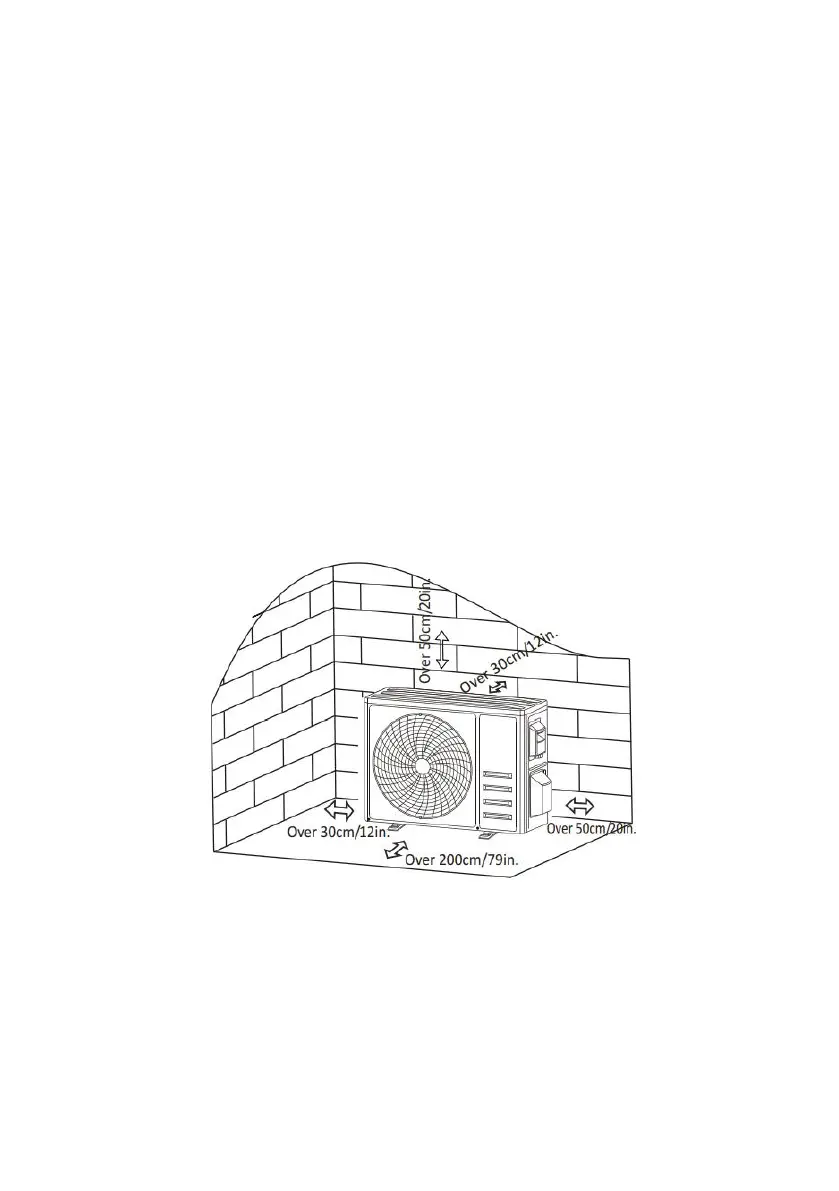 1. Do not install the outdoor unit near sources of heat, steam or flammable gas.