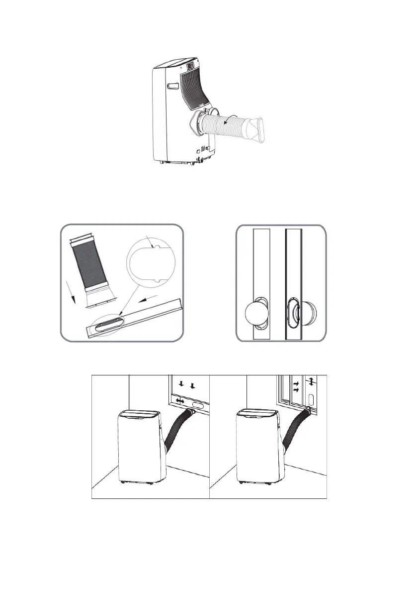 3. Attach the exhaust pipe assembly (exhaust fitting end) to the hot air outlet at the rear of