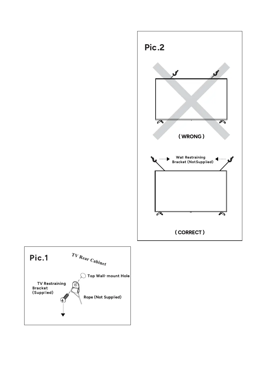 1) Please install the TV near the wall so that it doesn’t