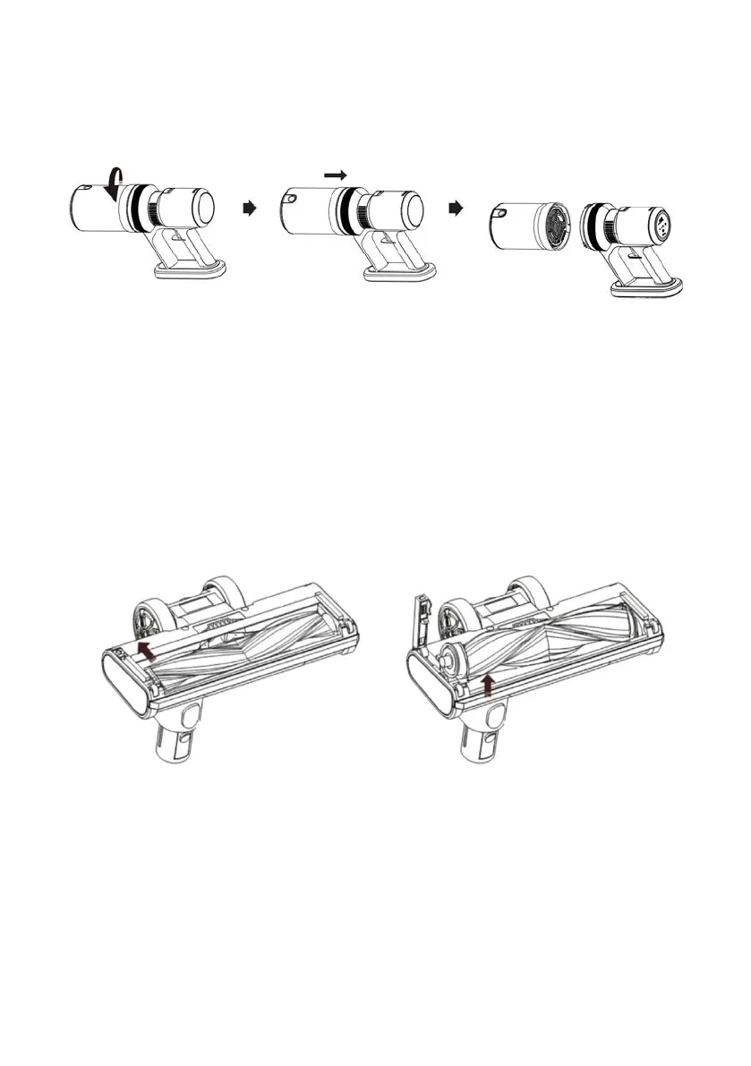 Rotate the dust cup anticlockwise and pull it backward to remove. To reinstall the dust cup