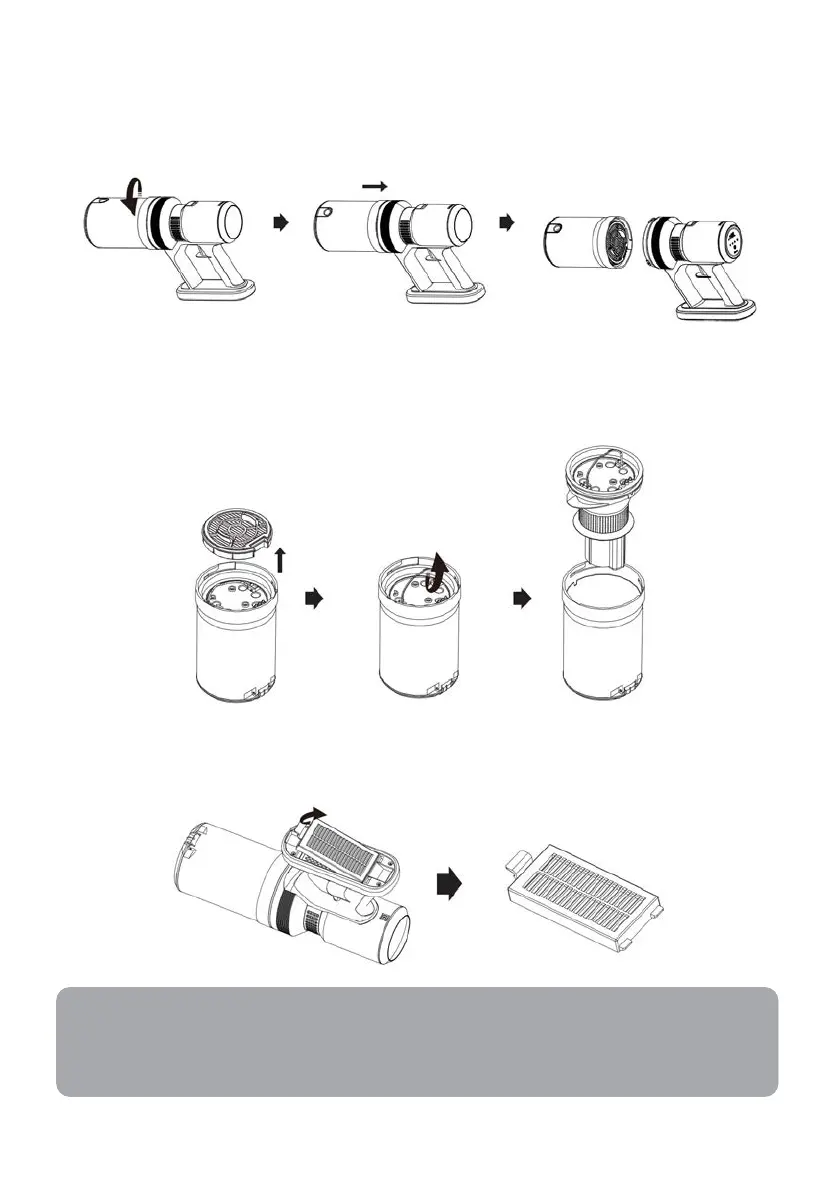 1. After emptying the dust cup, rotate the dust cup counter-clockwise and pull it
