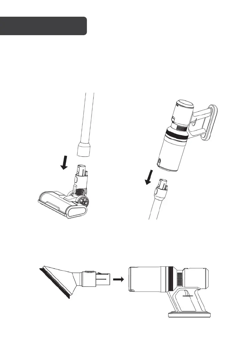 1. Align the floor brush to the aluminium tube and push it gently. It will connect with