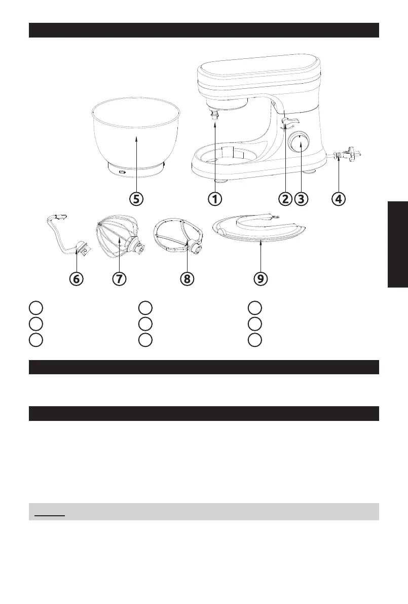3. Zamontuj wybrane narzędzie (hak do zagniatania (6) lub mieszadło (7)