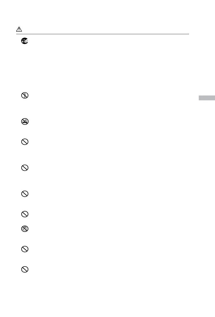 Fire, electrical shock and/or malfunction of the unit may occur as a result
