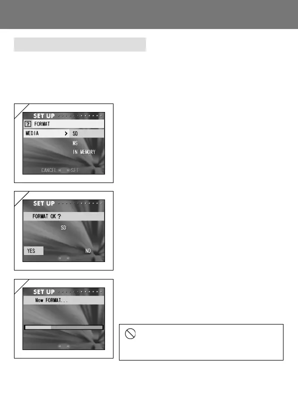 - Caution: Formatting erases all data, even images that are protected (p.79).