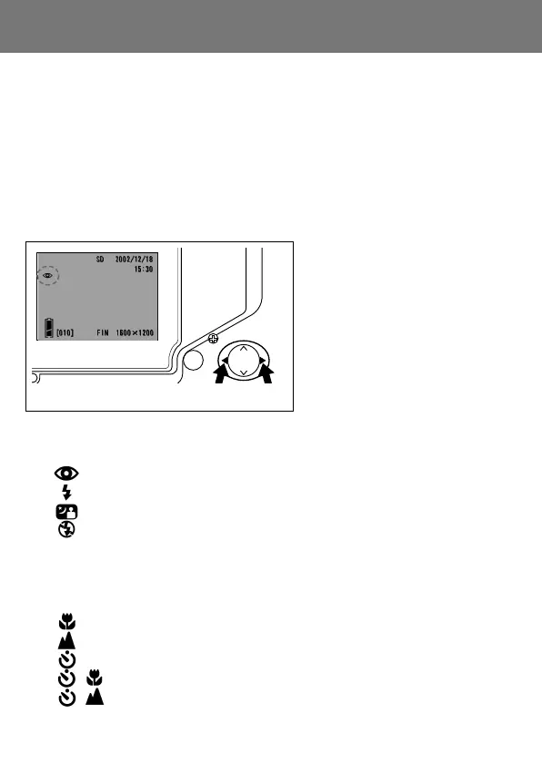 • Every time 왗 is pressed, the mode symbol will be displayed one by one, through