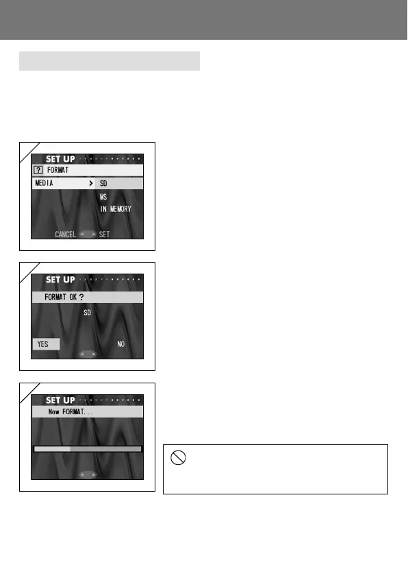 - Caution: Formatting erases all data, even images that are protected (p.82).