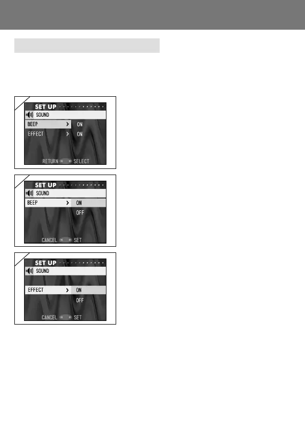 warning), sound effects (such as the shutter sound), etc. OFF and on.
