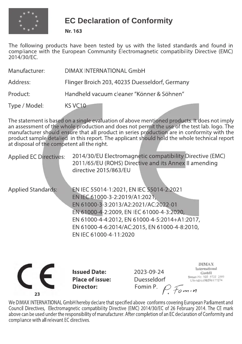 Bekijk gratis de handleiding van Könner & Söhnen KS VC10, stel vragen en lees de antwoorden op veelvoorkomende problemen, of gebruik onze assistent om sneller informatie in de handleiding te vinden of uitleg te krijgen over specifieke functies.
