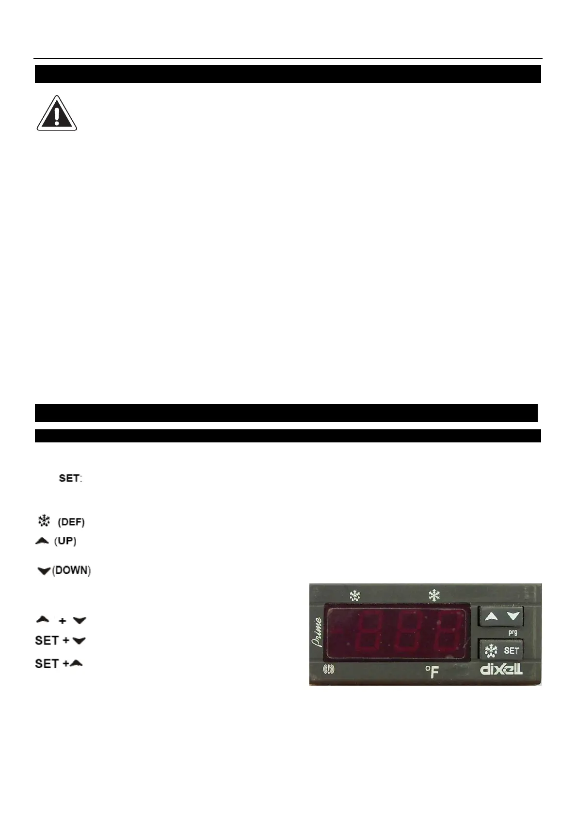 the unit will turn on again. The factory setting of the temperature range is 34°F to 38°F.