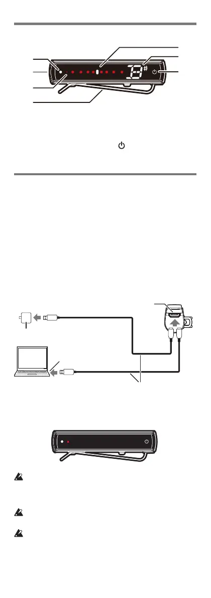 2. Micro USB Type-B port 6. Note/string name display