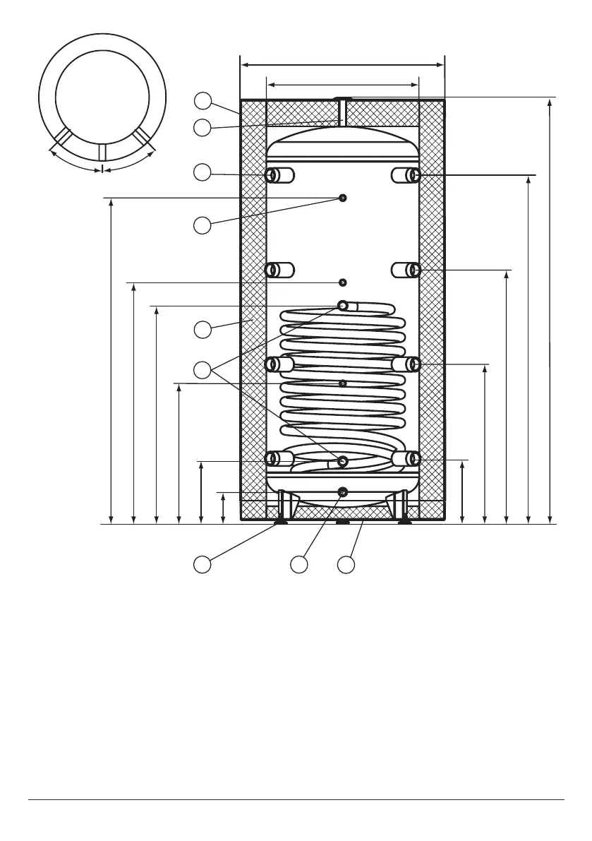 Az SVW (400l, 500l; 800l; 1000l) puffertároló szerkezete csőkígyóval
