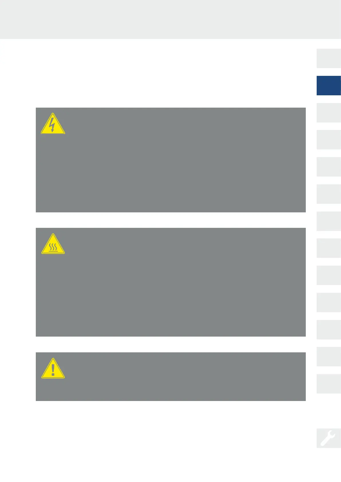 Enkelte komponenter kan blive over 80 °C varme under driften. Vælg monteringsstedet iht.