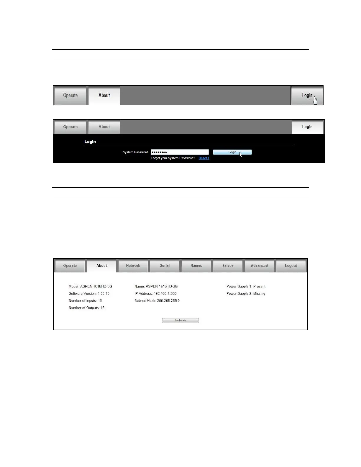 You must login to Set or modify Routing switcher parameters. To login, select the login button.