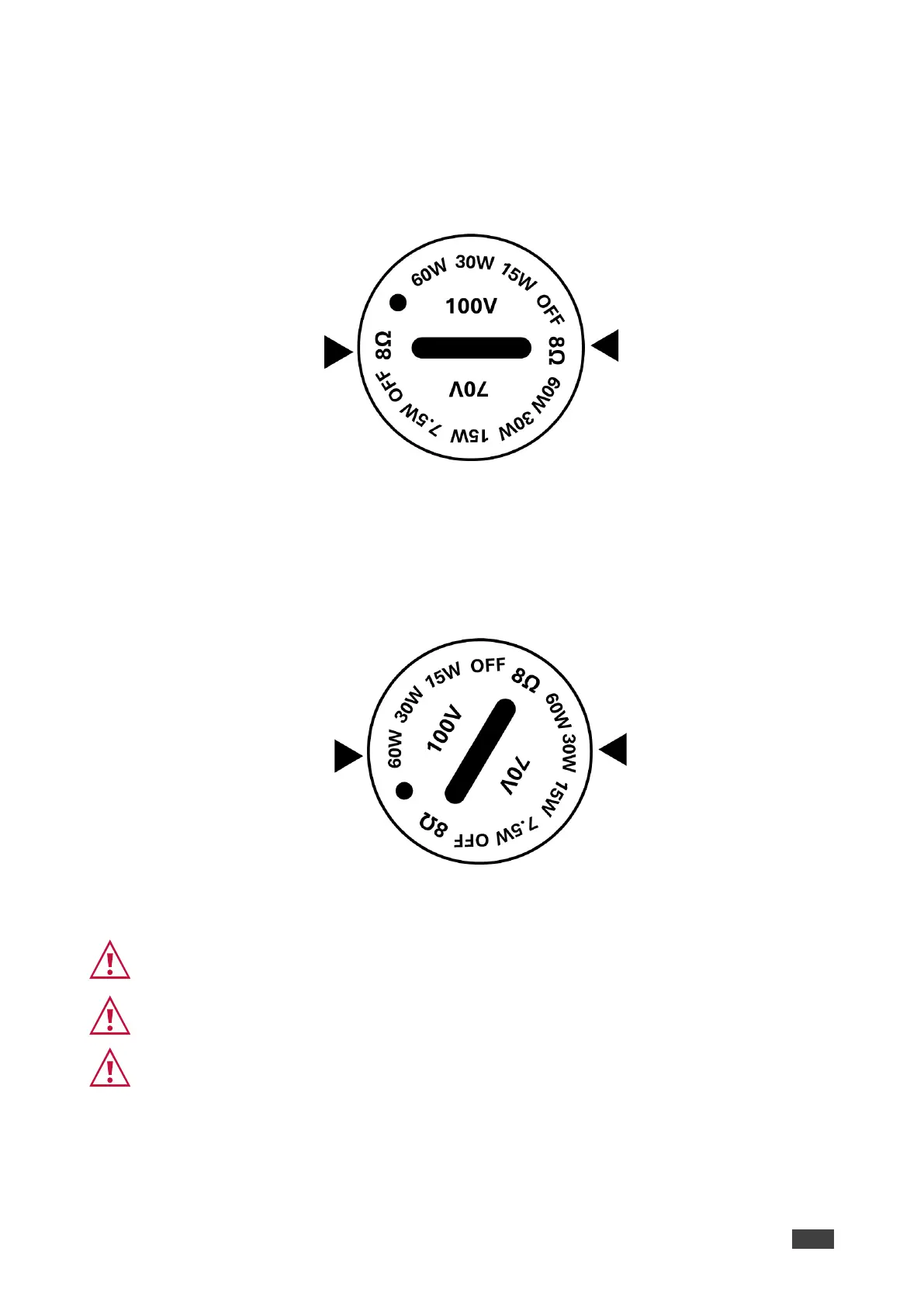 rating as shown in the picture. In this example, if the speaker is connected to a 100V line its