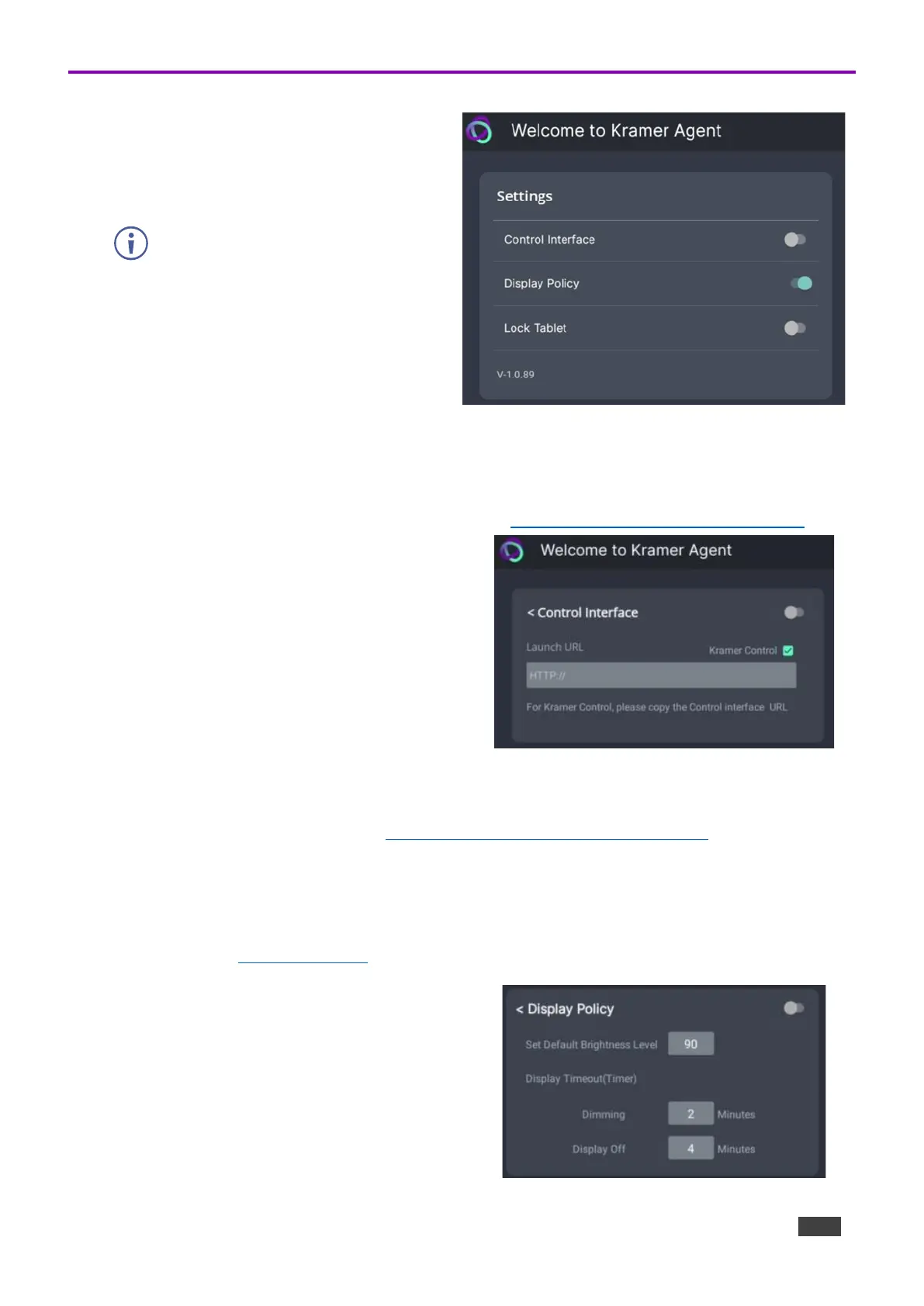 • These settings can also be set by API calls. See Using the Kramer Agent’s API on page 26.